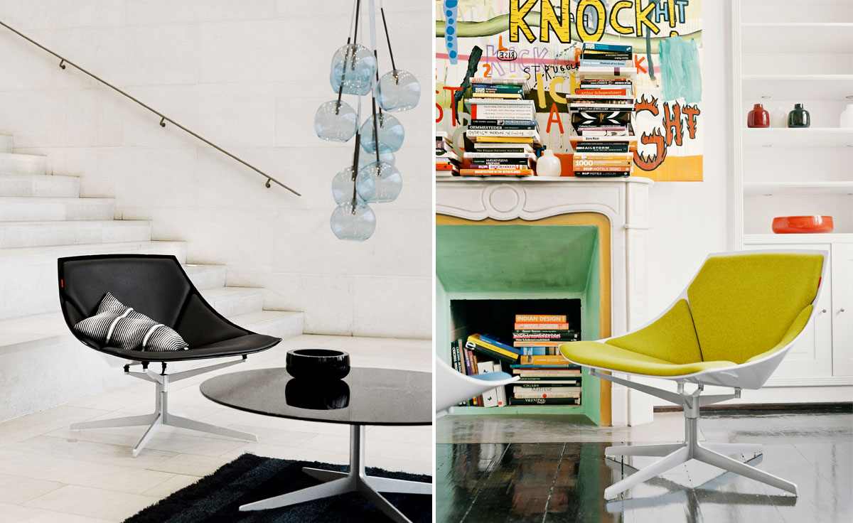 太空椅是由德国设计师 Jehs和Laub设计的。两人的灵感来源于人体与自然设计本身的能力。他们的追求是让事情简单化,不要太不自然。太空椅系列的设计想法源于坐在一只舒适的手感觉。设计的线形类似于小路,公路和田野景观。太空椅有白色、黑色或灰色,多样的抛光。椅子的制作采用纤维面料和皮革衬垫,外壳用漆合成材料,底部是用漆钢制成,使之与外壳颜色匹配。