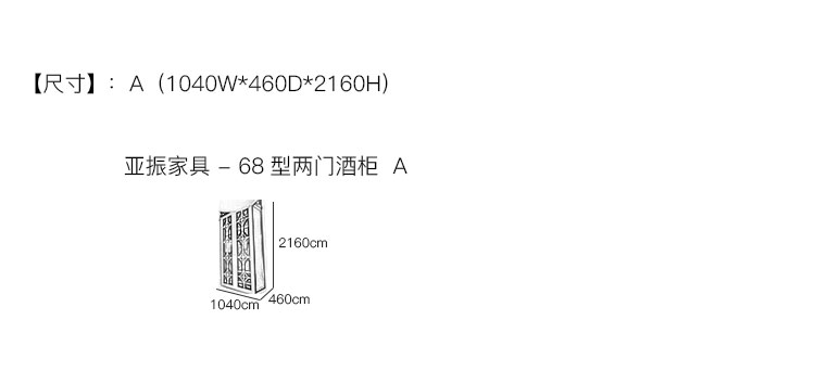亚振家具 - 68型两门酒柜 产品尺寸/示意图
