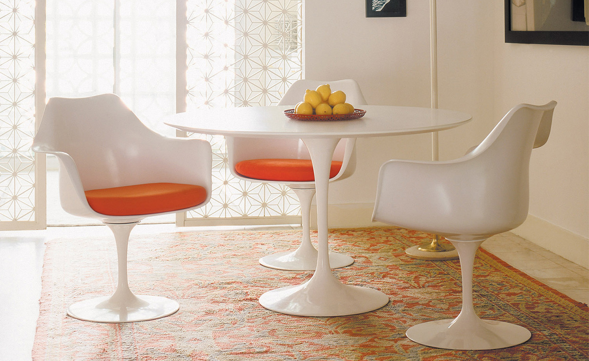 沙里宁郁金香扶手椅设有铸铝底座。外壳是用增强玻璃钢材料完成。座垫是可以可拆卸更换的,有拉链锁扣。