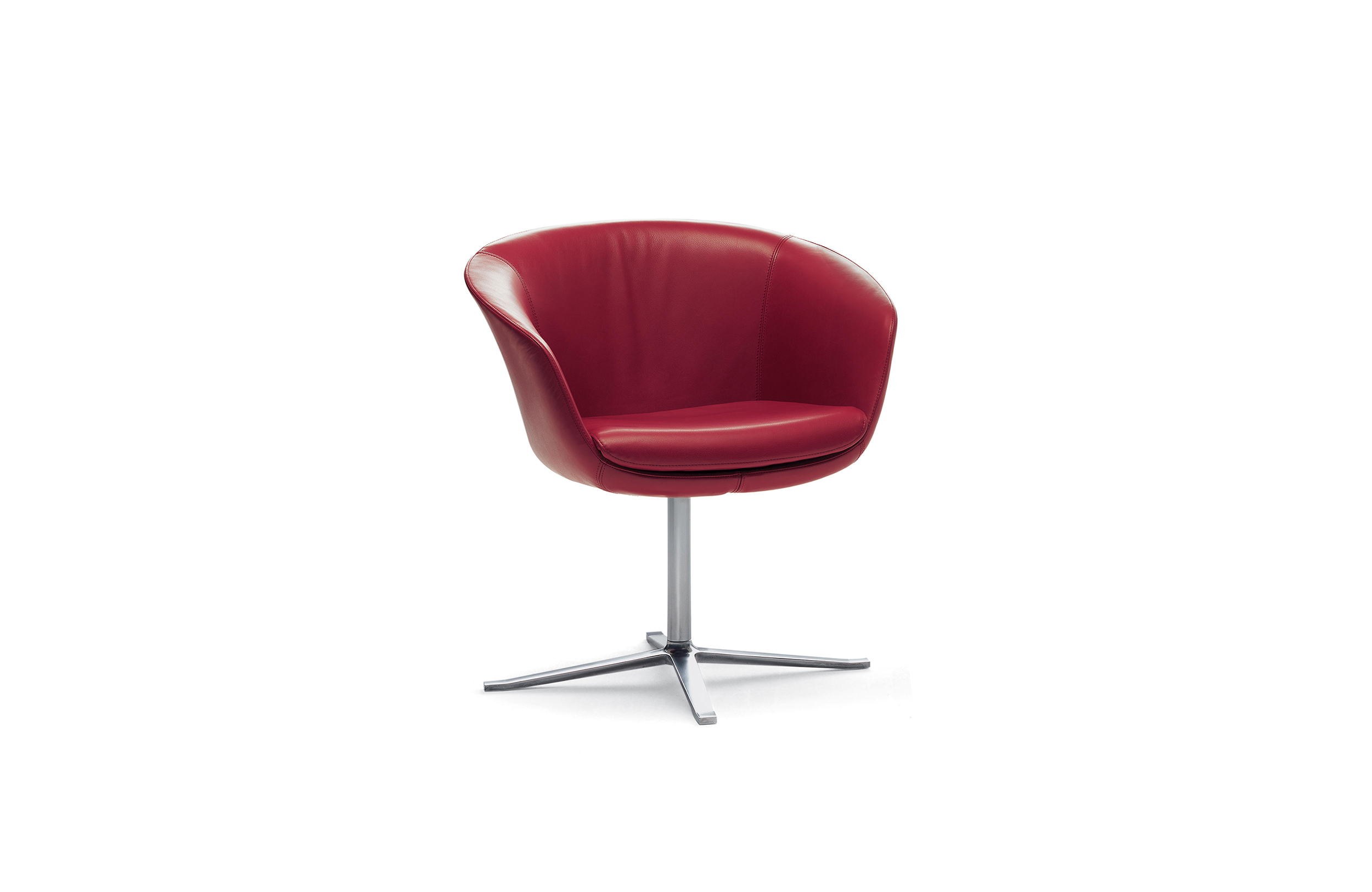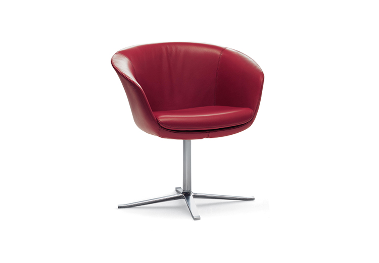 这是一张能提供豪华舒适感的软垫扶手椅。其轻柔的扶手,舒适的靠背,构成了线条迷人外形。依靠其细长的支架,椅子可以很随意的转动。同时与脚架类型相同的X茶几相配套。
