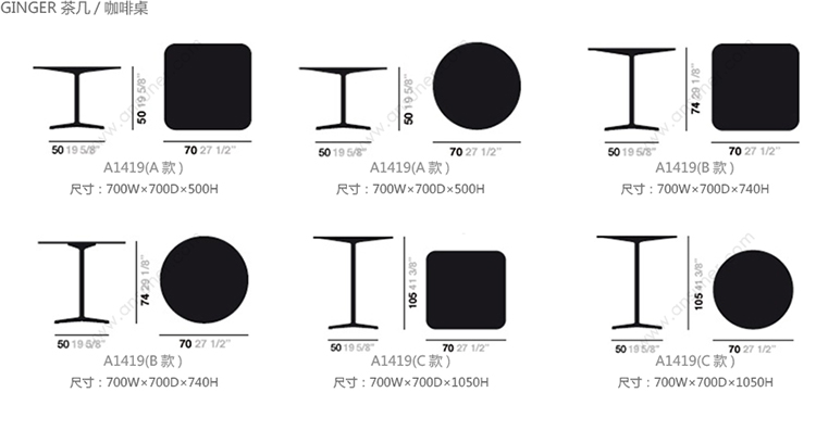 Ginger 茶几/咖啡桌 系列尺寸/示意图
