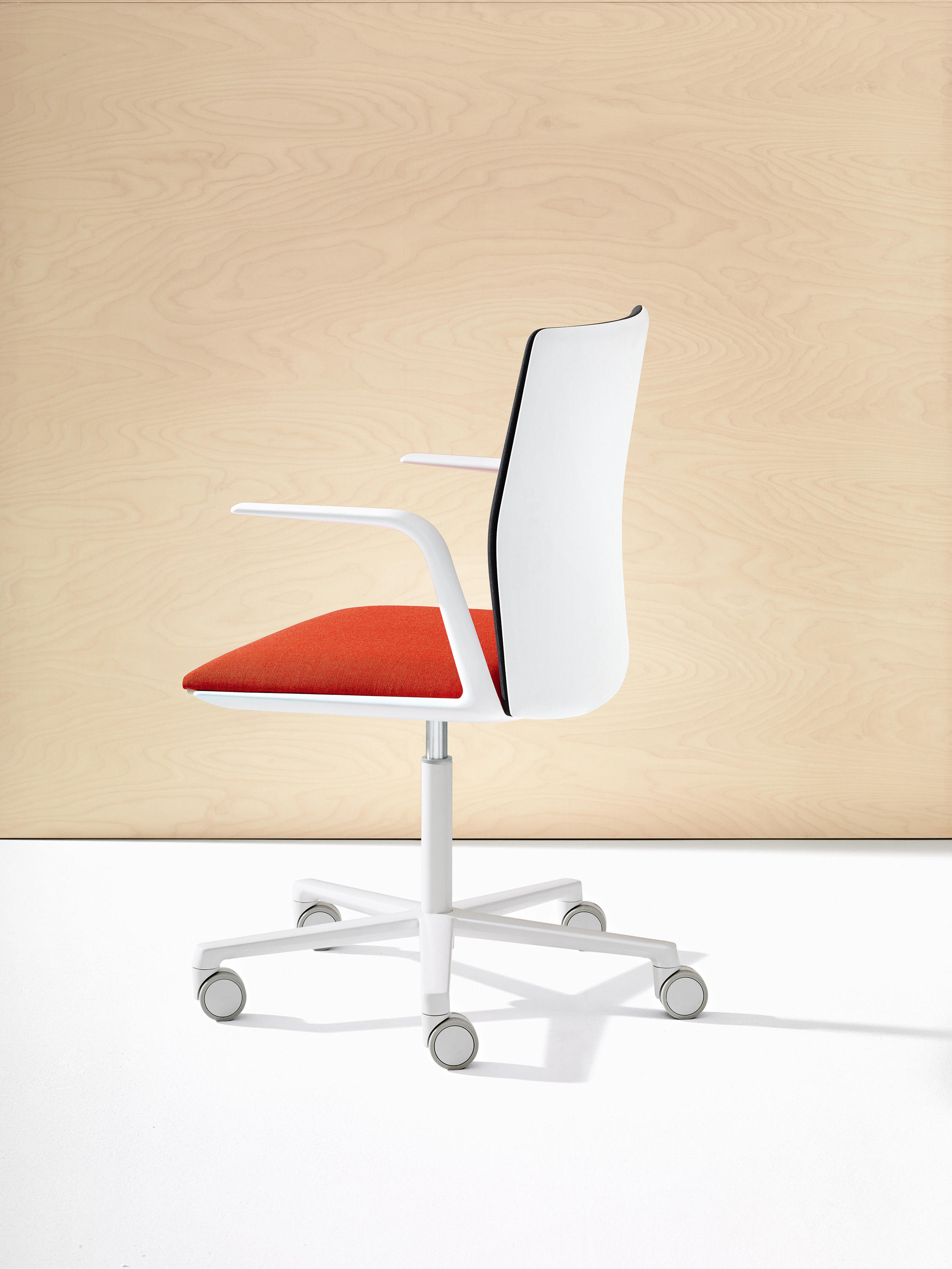 推出Kinesit,Arper的第一个办公椅,百分之百符合法规要求。椅子和椅背设计轻巧,设计简约,可完全调节,使其符合各种体型,即使在耗时较长的项目中也能获得最佳舒适度。椅子上有一个隐藏在座椅下方的内置机构,可提供同步运动和座椅高度指令。隐形可调节腰部支撑隐藏在靠背的薄框内,提供额外的灵活性和舒适性。 Kinesit可通过Arper目录中的所有面料系列进行定制。