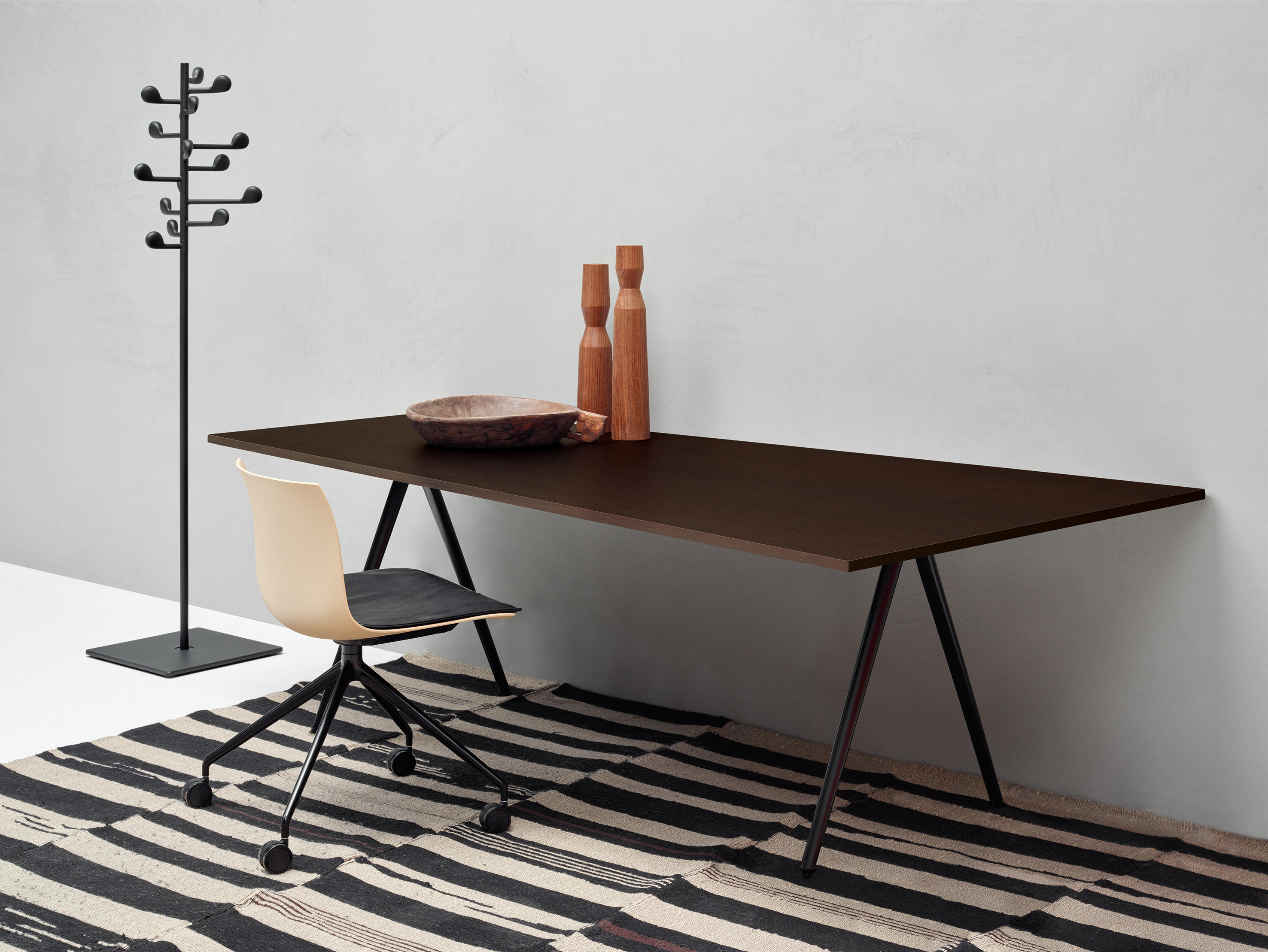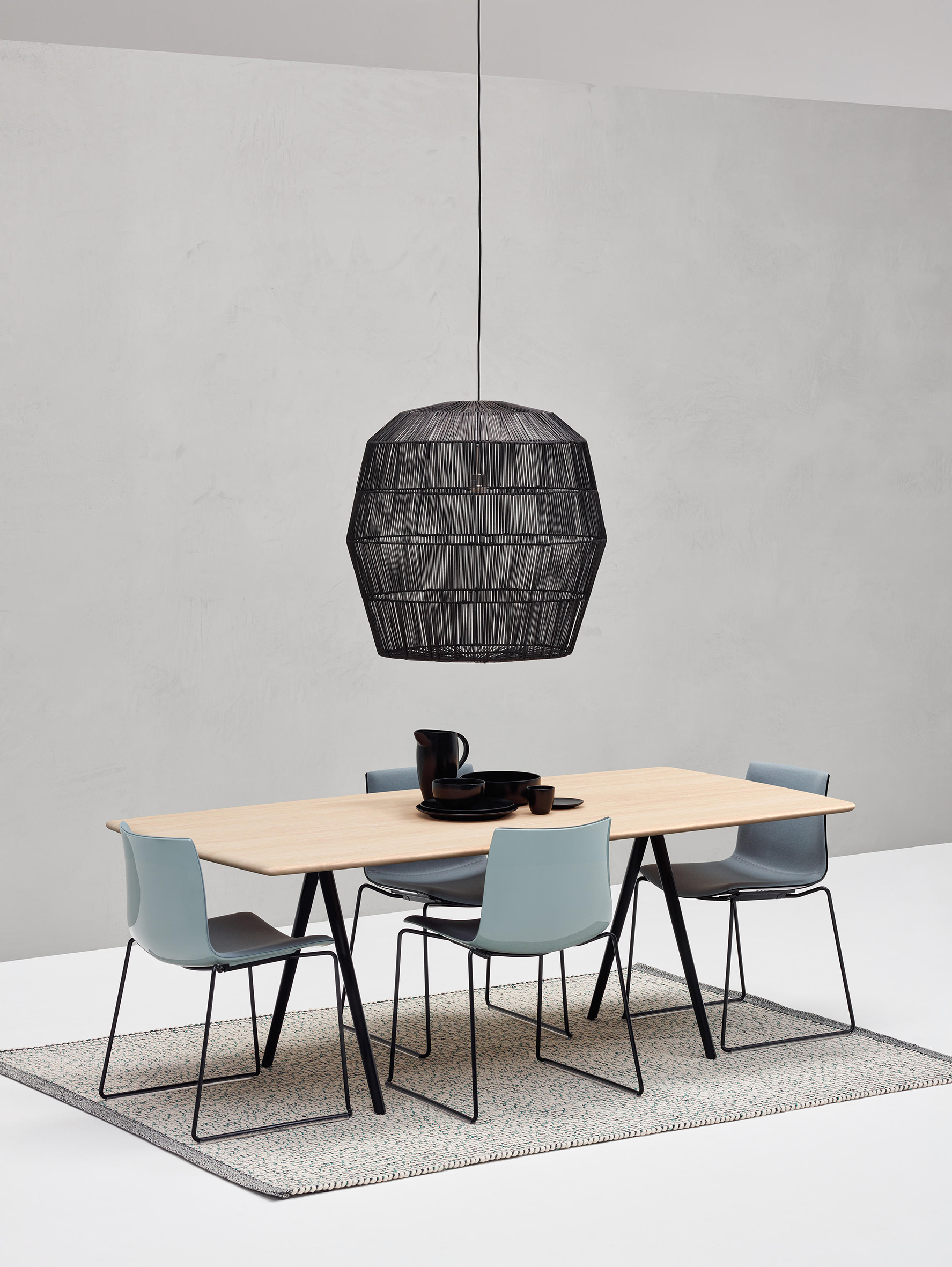 Meety由Lievore Altherr Molina设计,以表格形式模仿Catifa的适应性系统。灵感来自桥梁的建筑结构 - 强大而轻盈 - Meety的铝制支腿形成坚固的结构,顶部看起来漂浮或悬停。 Meety采用适应性强且动态的桌面系统,可实现最佳定制,Meety通过其铸铝支腿保留其独特的特性,可无缝集成到多种桌面选项中:尺寸,比例和材料。多样化的自定义功能可以为任何环境(家庭,工作和生活)提供量身定制的优雅系统。