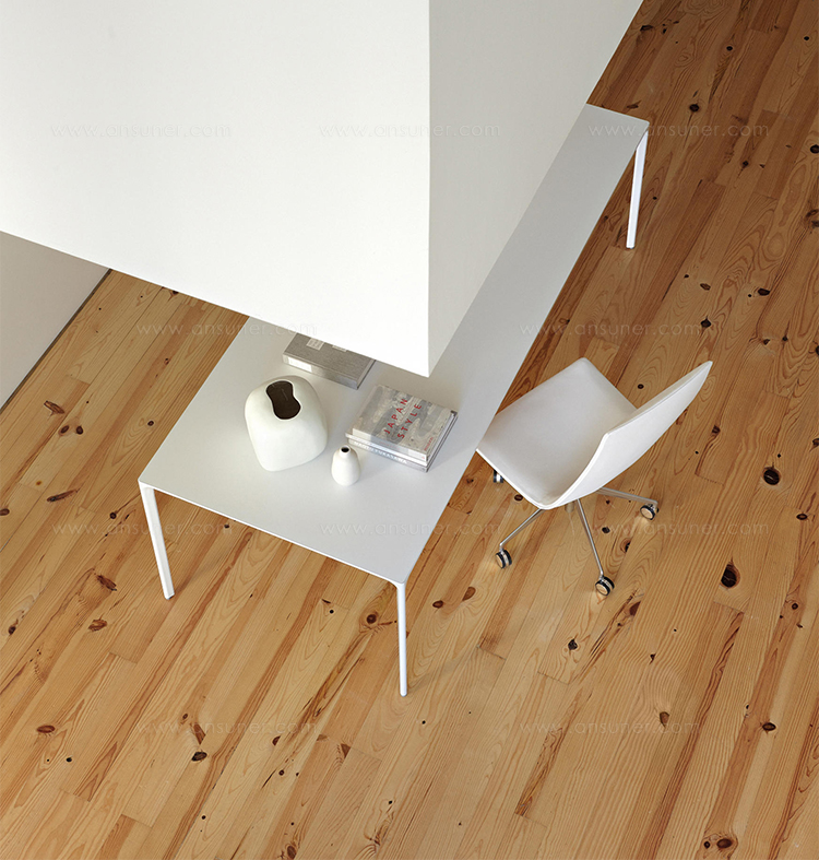 Nuur有方形或矩形两种形式,层压顶部有多种颜色可供选择,也可采用木饰面板制成。 高度可调节的结构采用抛光或涂漆铝制。