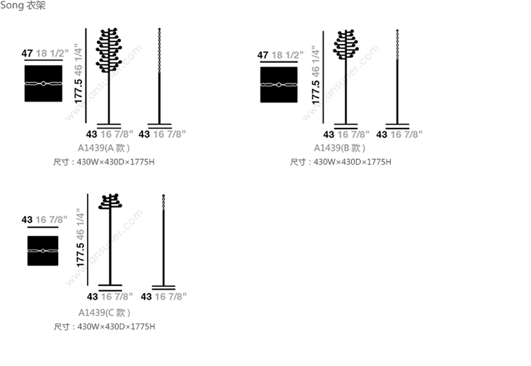Song 衣架 系列尺寸/示意图