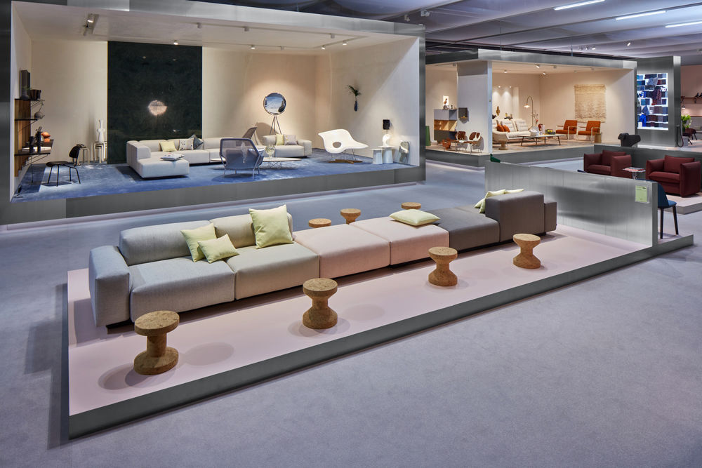 Aura Stripes是一种新的条纹面料,唤起了光影的俏皮效果,被英国设计师选中,以强调沙发在许多可能配置中的简洁线条。 Aura Stripes采用彩色大理石制成,从2018年9月1日至2019年12月31日,Vitra作为Soft Modular Sofa的覆盖面料独家提供。