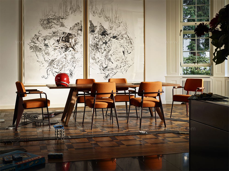 JeanProuve在第二次世界大战期间开发了Table Solvay,由于当时金属稀缺,他设计了优雅的木腿腿。 天然橡木,深色烟熏橡木或美国胡桃木的实木组件为桌子带来轻松和精致的感觉。