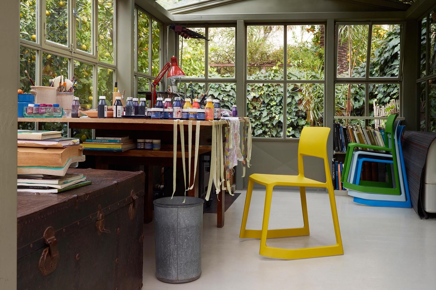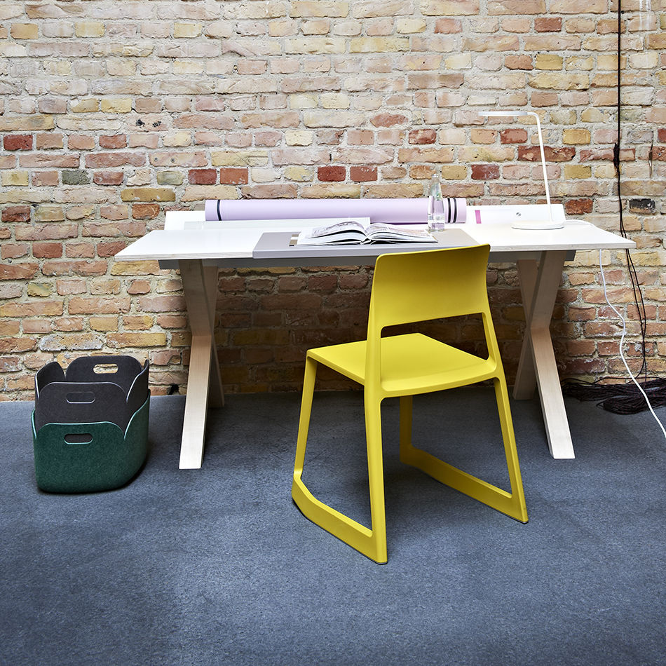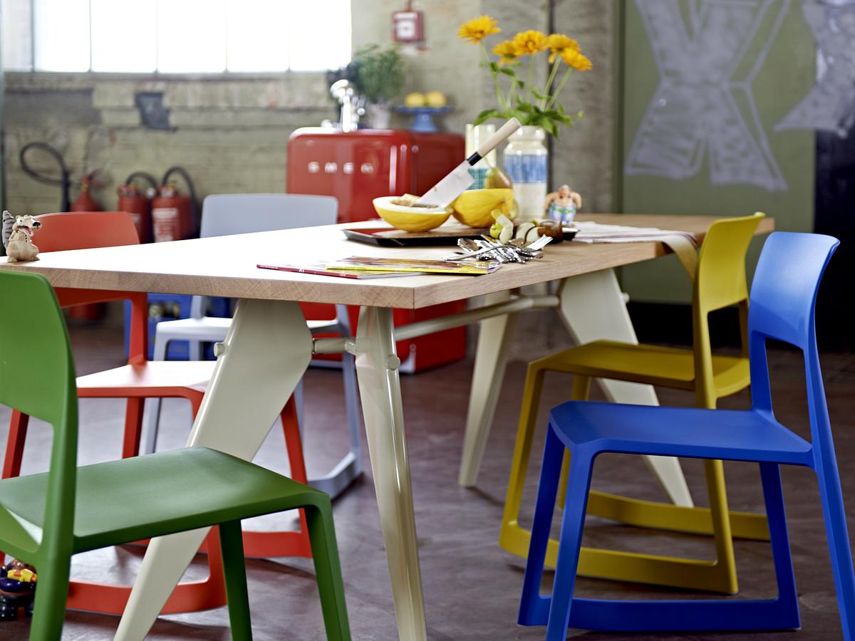 多用途椅子Tip Ton by Vitra代表了一种全新类型的椅子,因为它可以作为第一个坚固的塑料椅向前倾斜并邀请您摇滚,这为他赢得了他的名字。 Tip Ton由Edward Barber和Jay Osgerby设计,设置了骨盆和骨骼,以促进血液流向腿部和腹部和背部区域的氧合作用。 所以Vitra椅子Tip Ton也适合长时间坐在办公桌前。 Tip Ton满足了真正的多用途椅子的所有期望:例如,作为可堆叠的椅子,它也可以在食堂中大量使用,并且根据颜色,Vitra Tip粘土进入起居室,厨房或露台有时候谨慎,