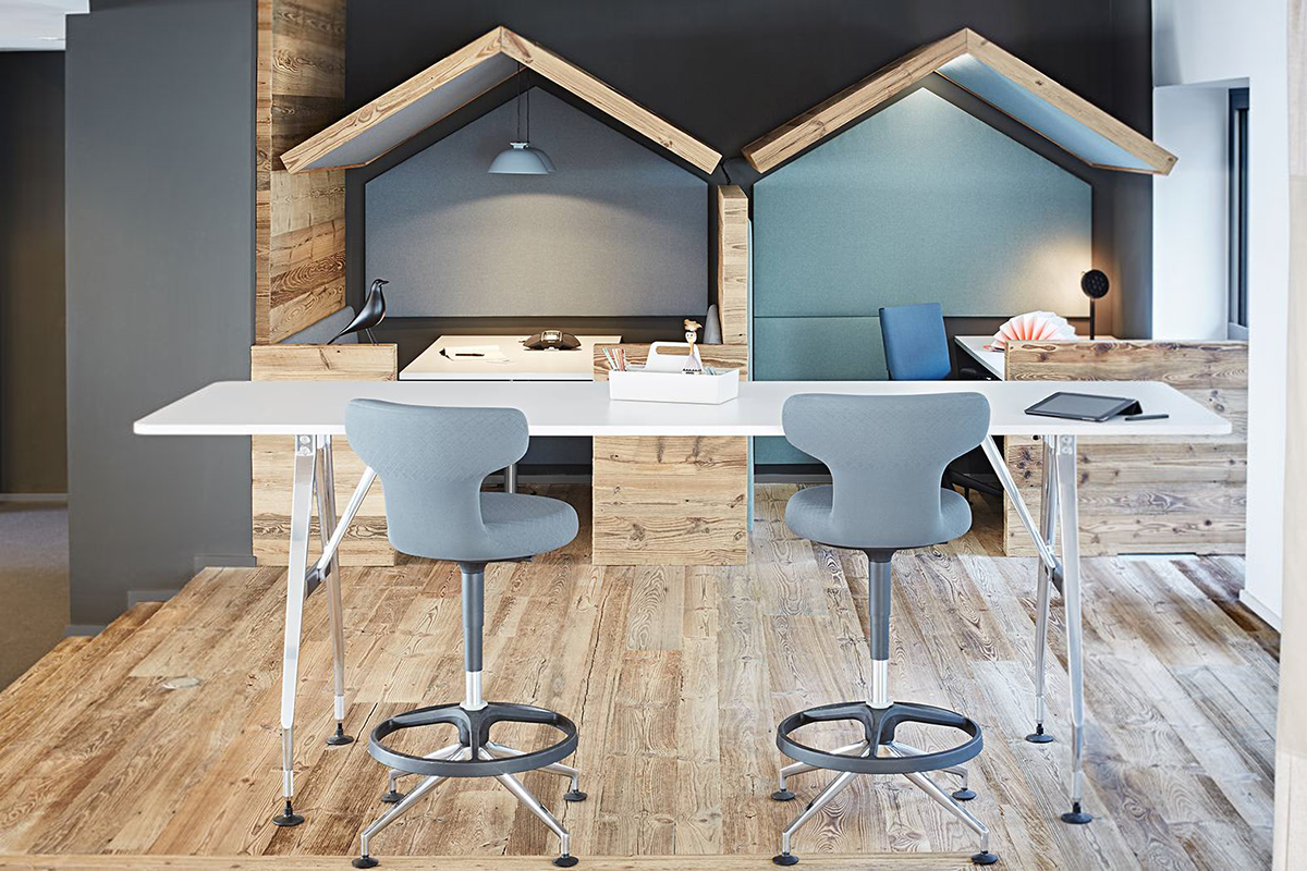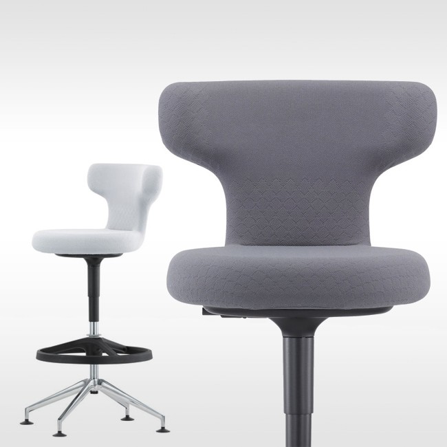 Pivot Counter Stool椅子有一个圆形和弯曲的靠背向前。 它有助于改变姿势,因为椅子也可以横向使用或作为倾斜的稳定支撑。 柔软的衬垫确保了极佳的舒适性。