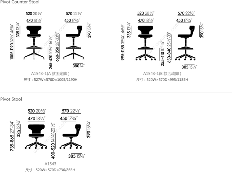 Pivot Counter Stool 系列尺寸/示意图