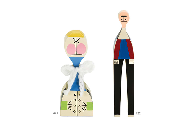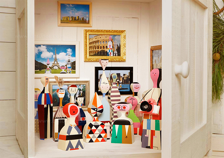 Alexander Girard的木制娃娃是一个代表人类和动物角色的大型木制家族。 吉拉德于1953年设计了他们作为圣达菲家中的装饰物品。 这些原件是维特拉设计博物馆馆藏的吉拉德庄园的一部分,作为当前重新版本的模型。 精确地复制到最后的细节,许多不同的木制娃娃今天仍然是手工制作和绘制的,就像Alexander Girard的复古作品一样。 即使它们之间的差异非常微小:每个木制人物都是独特的个性化产品,真正独一无二。