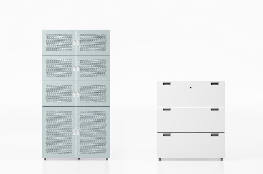 Arik Levy的储物柜系列可与所有Vitra办公家具系统配合使用。 各种宽度和高度的橱柜和侧板结合在一起,提供多种可配置的存储选项,可轻松组装,转换和拆卸。