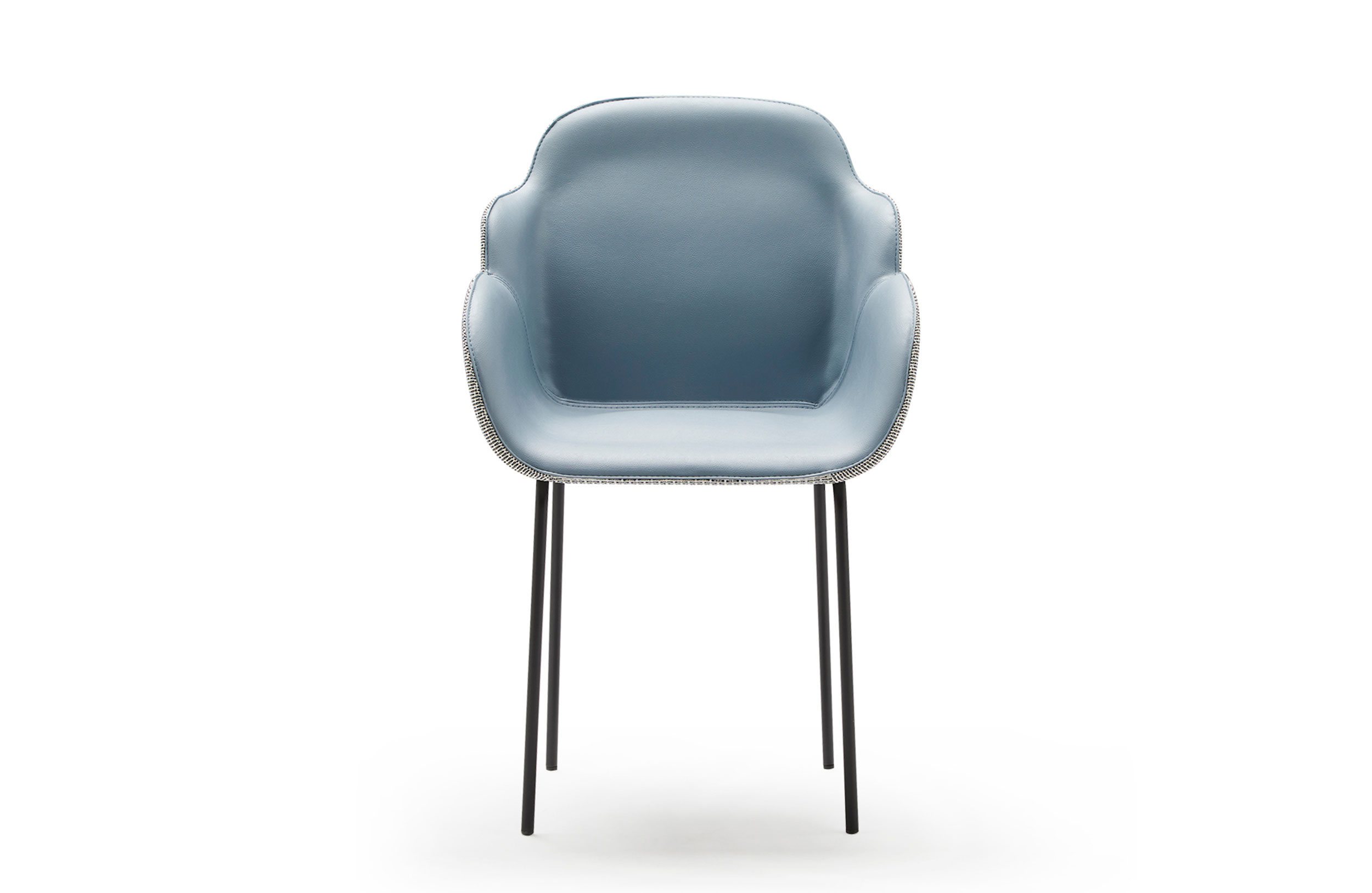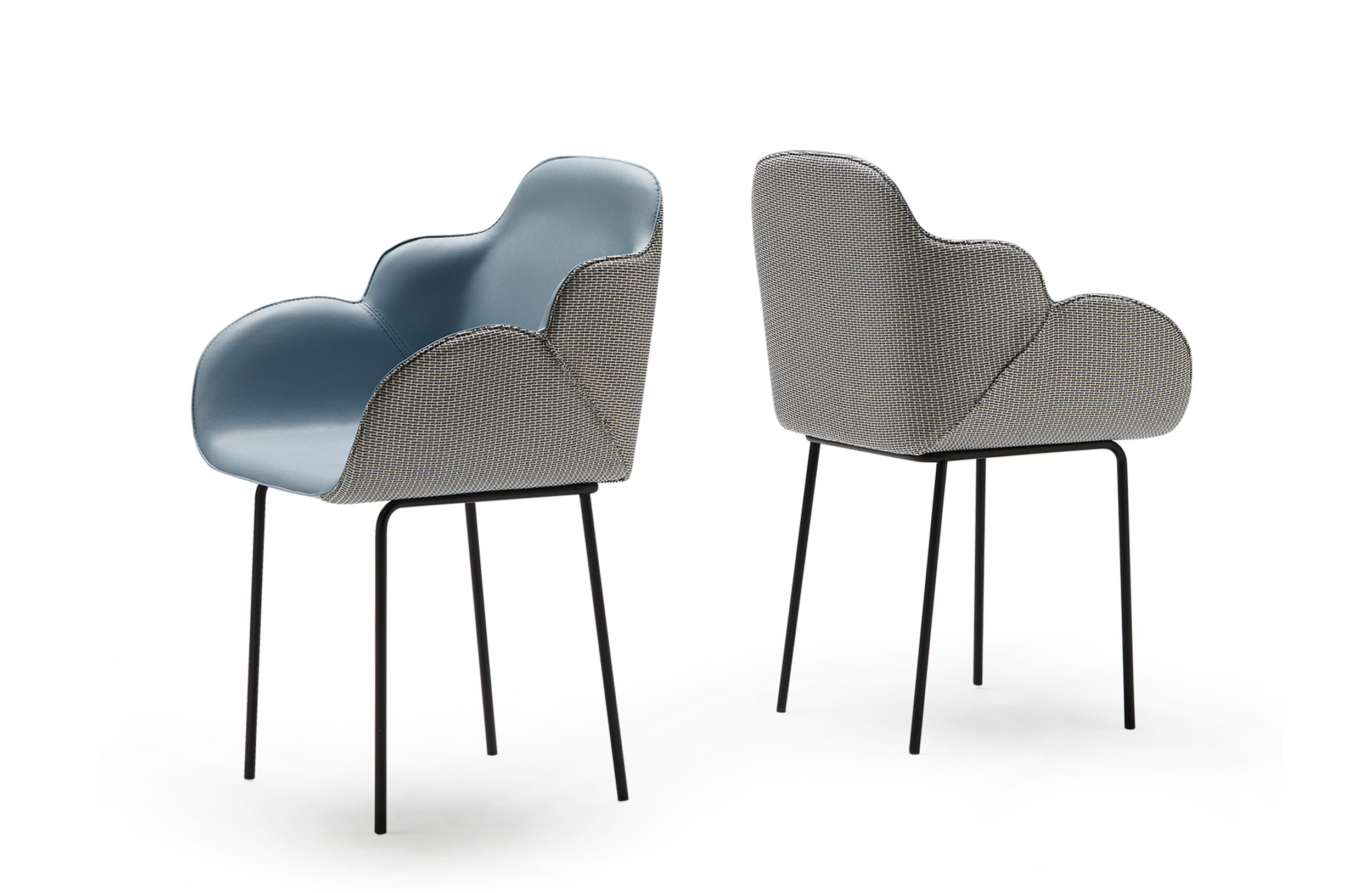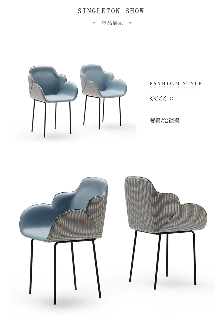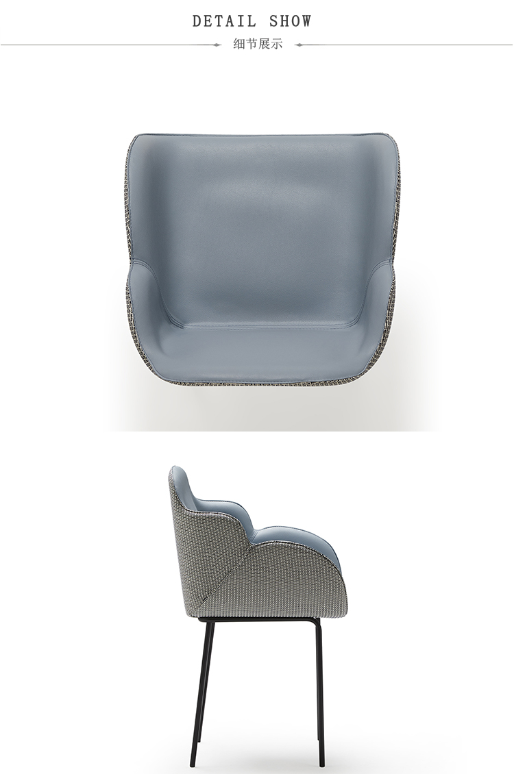 扶手椅的特点是其大胆的美学座椅和最小的结构之间的对比。当代建筑形式几乎处于平衡状态,一旦你坐在上面就会给人一种符合人体工程学的感觉。两个软垫外壳总是优雅地完成了可见的缝合,定义了物体体积和边缘。内部皮革与外部织物之间的对比使得座椅拥抱并且非常舒适,提供适合任何空间(如合同或家居)的组合和饰面的无限可能性。