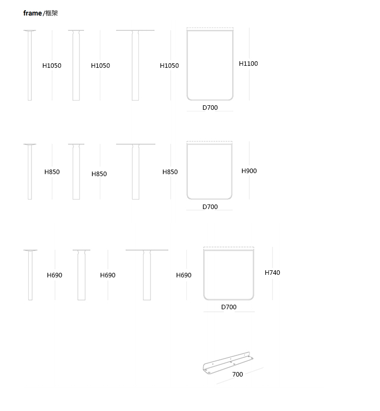 BRUNCH 高脚台/吧台 系列尺寸/示意图