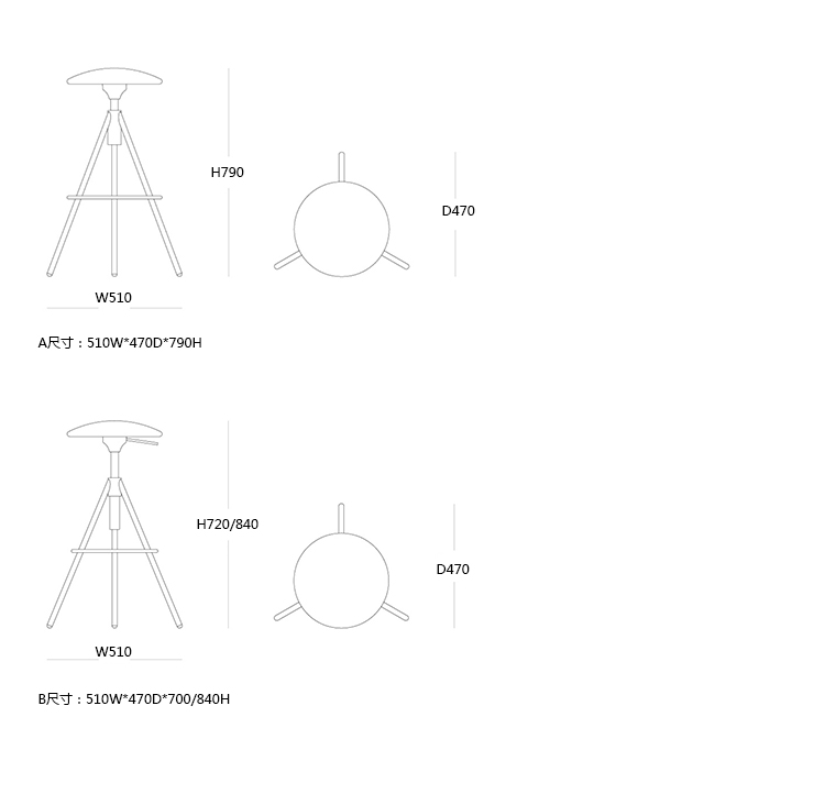 B:510W*470D*700/840H