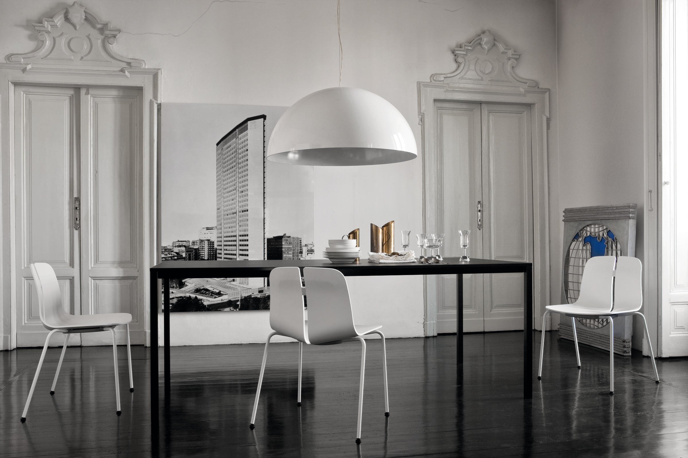 一个很小的间隙,一条线的中断,和连接的凳子形状。它是轻的,就像它狭窄的金属底座和木质座椅所暗示的那样,轻轻弯曲形成靠背。在自然的木材版本,纹理加强了柔软的轮廓和拥抱像一个非常新鲜的叶子,突出其结构的轻盈性。