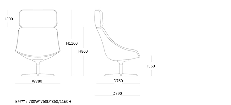 B:780W*760D*860/1160H