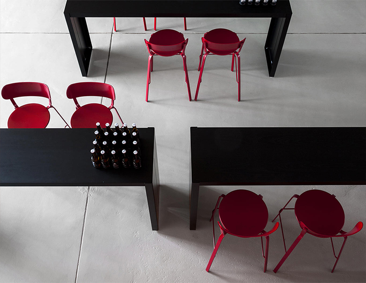 STIL,以其简单的线条,完全由涂漆的金属的,并通过标志性小酒馆椅子的启发,隐藏高度精制的细节。