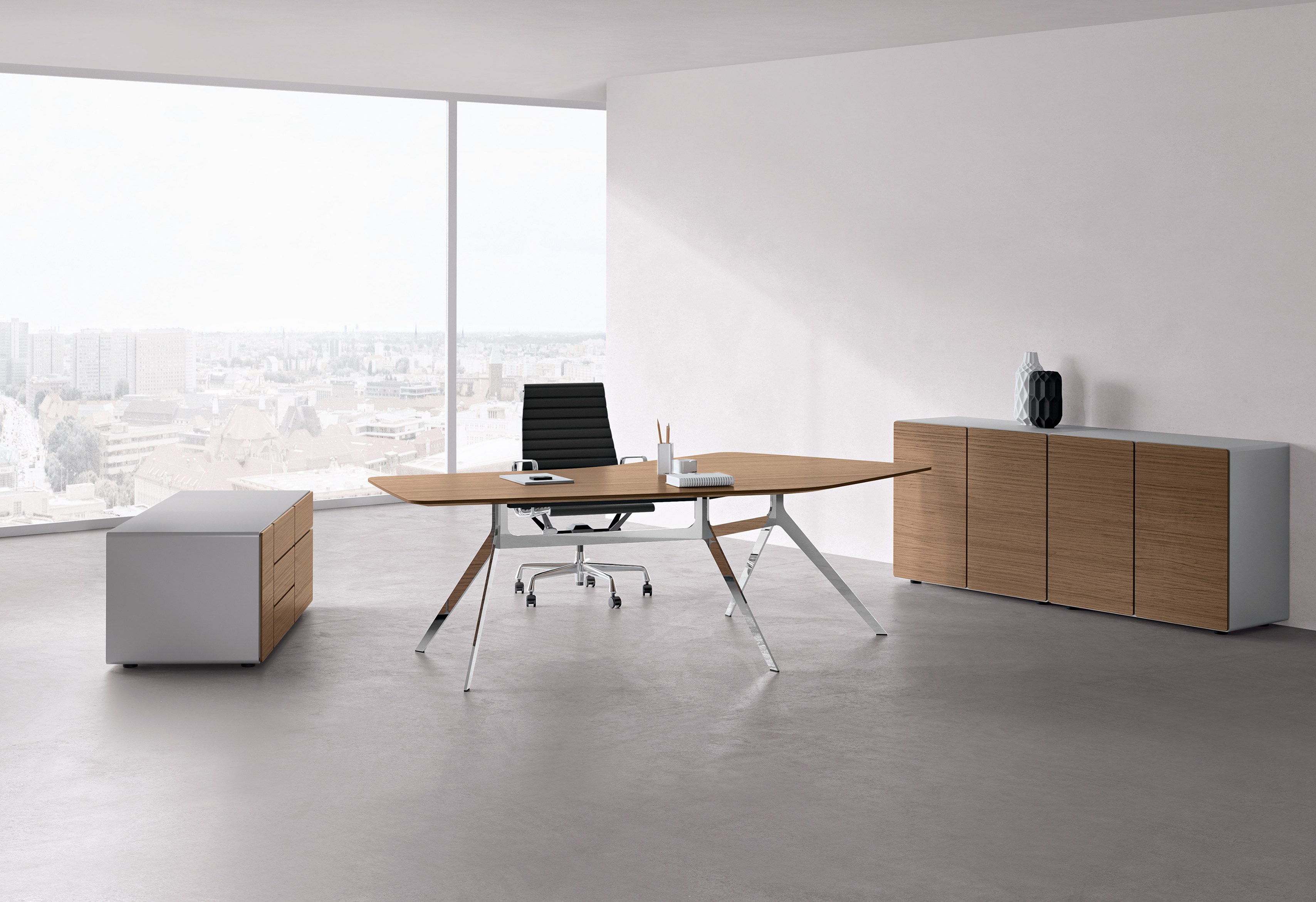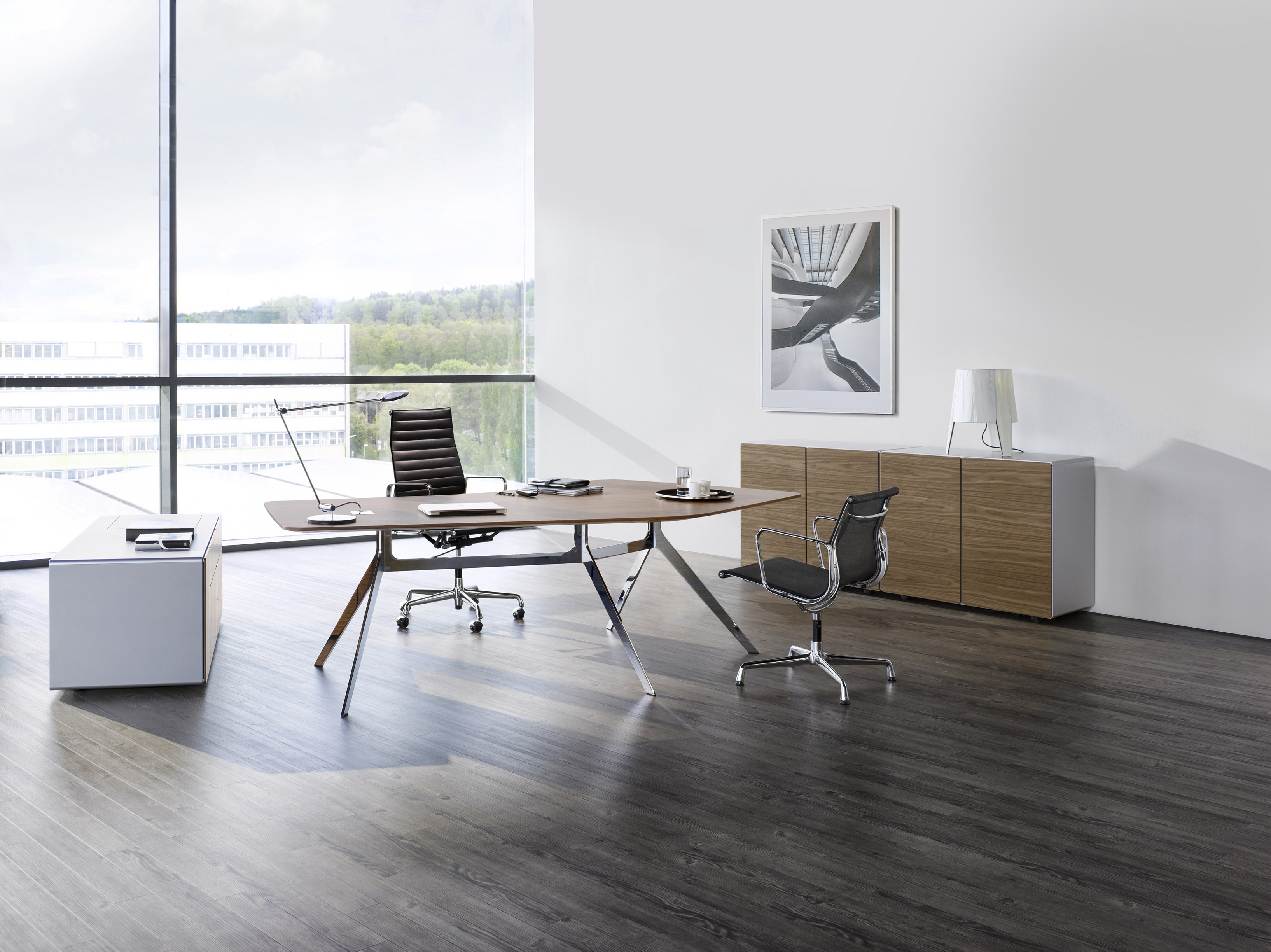 Star系列轻盈、纤薄,但却优雅而坚固。充满个性的外观设计使得办公空间焕然一新。极具特色的桌脚辅以亮光铬锐意十足。