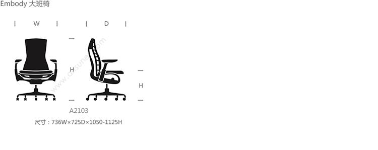 Embody 大班椅 系列尺寸/示意图