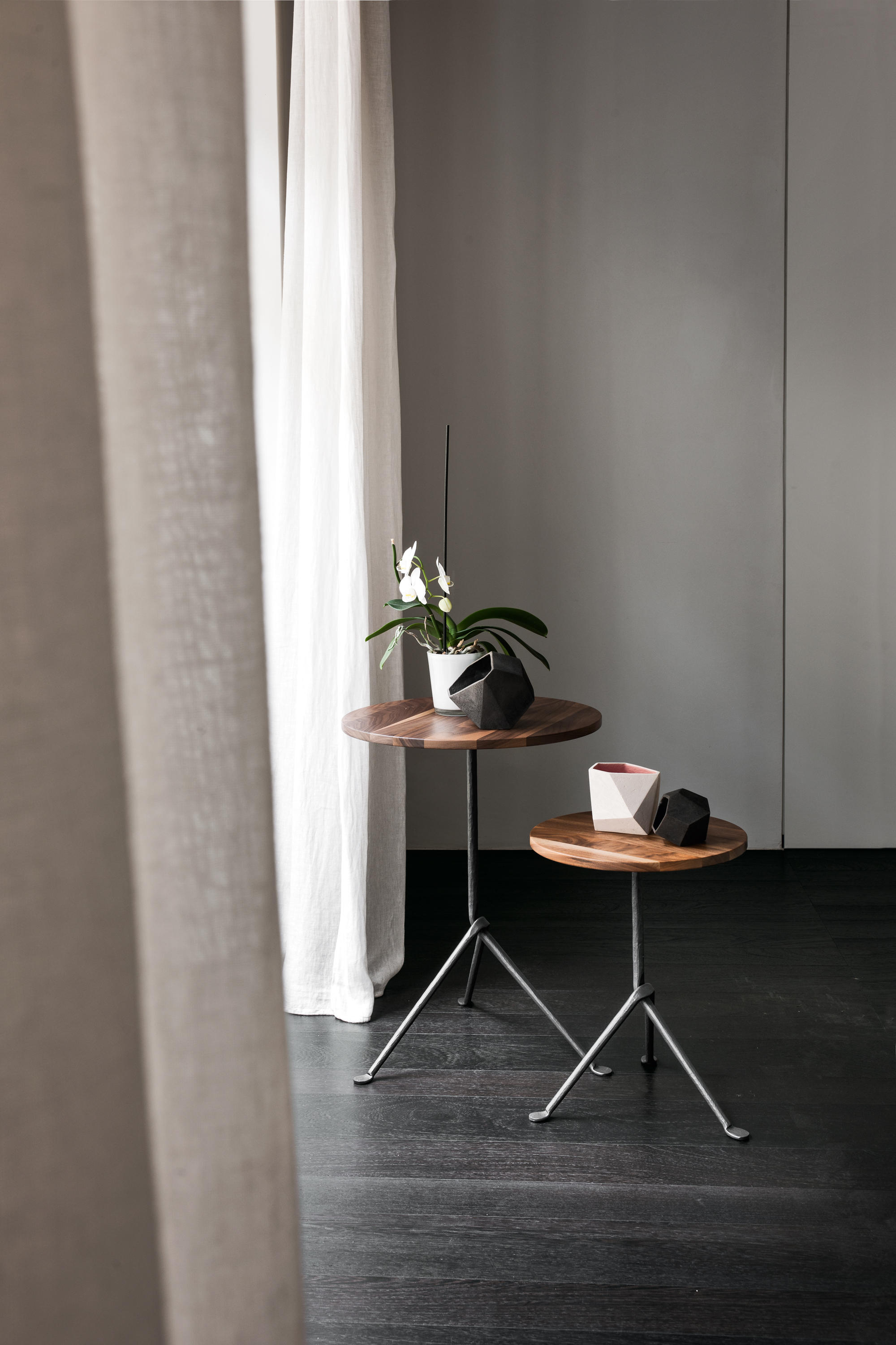 罗南补充说:“这个项目的微妙之处在于,它使用了这些暴力、强烈的手势,同时,材料的最小使用和它们的巧妙手法使它变得微妙。”几何形状的基座具有系统性,可以承受不同高度的压力,可以承受不同大小、不同形状和不同材质的顶部。