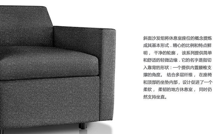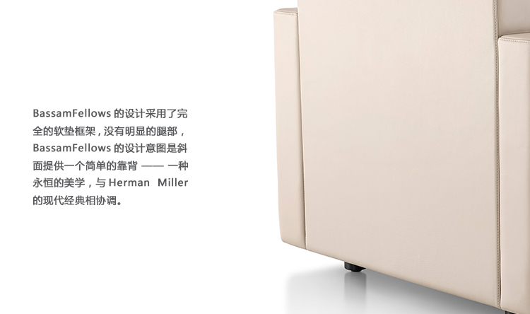 BassamFellows的设计采用了完全的软垫框架,没有明显的腿部,BassamFellows的设计意图是斜面提供一个简单的靠背——一种永恒的美学,与Herman Miller的现代经典相协调。