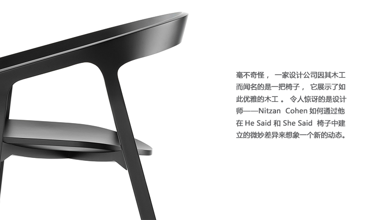 毫不奇怪,一个设计公司的木工说想出了一个椅子,展示了如此优美的木工。令人吃惊的是设计师Nitzan Cohen设想了一个新的动态与他建立他的他说她说椅子的细微差异。
