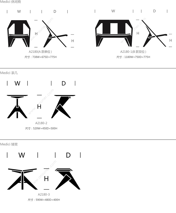 Medici 系列尺寸/示意图
