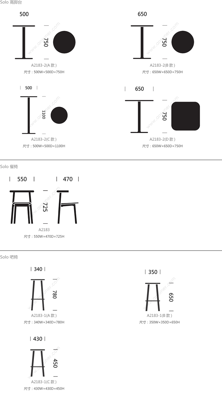 Solo 系列尺寸/示意图