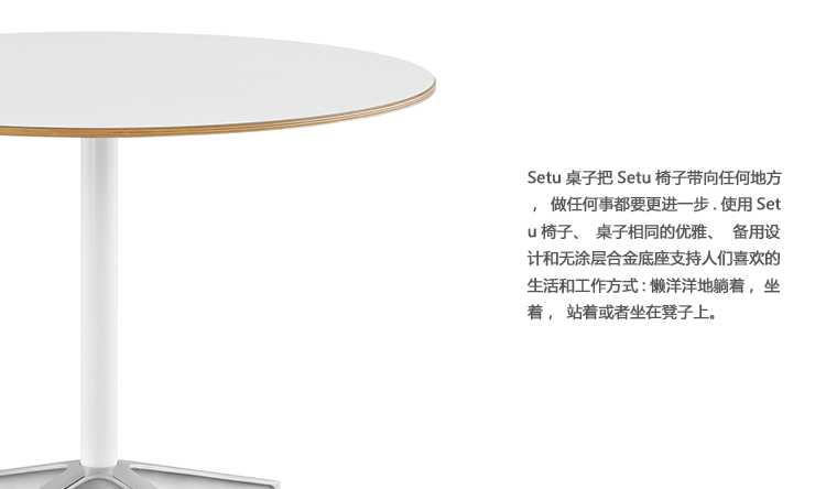 Setu桌子在Setu座椅“去任何地方,做任何事”的基础上再进一步。Setu桌子使用了与Setu座椅相同的优雅、简约设计和无涂层合金基座,为您喜欢的所有生活与工作方式提供支持:躺卧、坐下、站立或坐在凳子上。这款桌子有几种高度和直径以及各种表面材料可选。