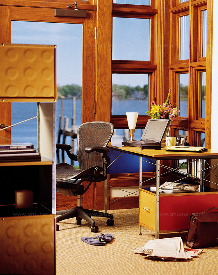 他们在底特律艺术学院为1949年的一次展览所做的工作,Eames Desk Units和Storage Units展示了“机器美学”和日本风格对当时的Eameses有重要影响。早在“模块化”和“高科技”进入语言之前,Charles和Ray Eames就以多种方式将标准化部分结合起来,创造出适合家庭和办公室各种用途的实用家具。