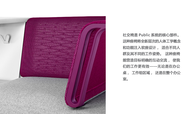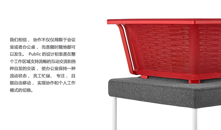 Public是首款支持非固定工作方式的办公系统,并且能在办公桌,流动空间以及团队区域内提供最大限度的舒适感,同时所有组件均纳入一致性设计理念。视觉上精致统一,模块化表面、储藏和座椅可根据您的需要采用各种配置方案,便于实现团队合作与个人工作的流畅转换。