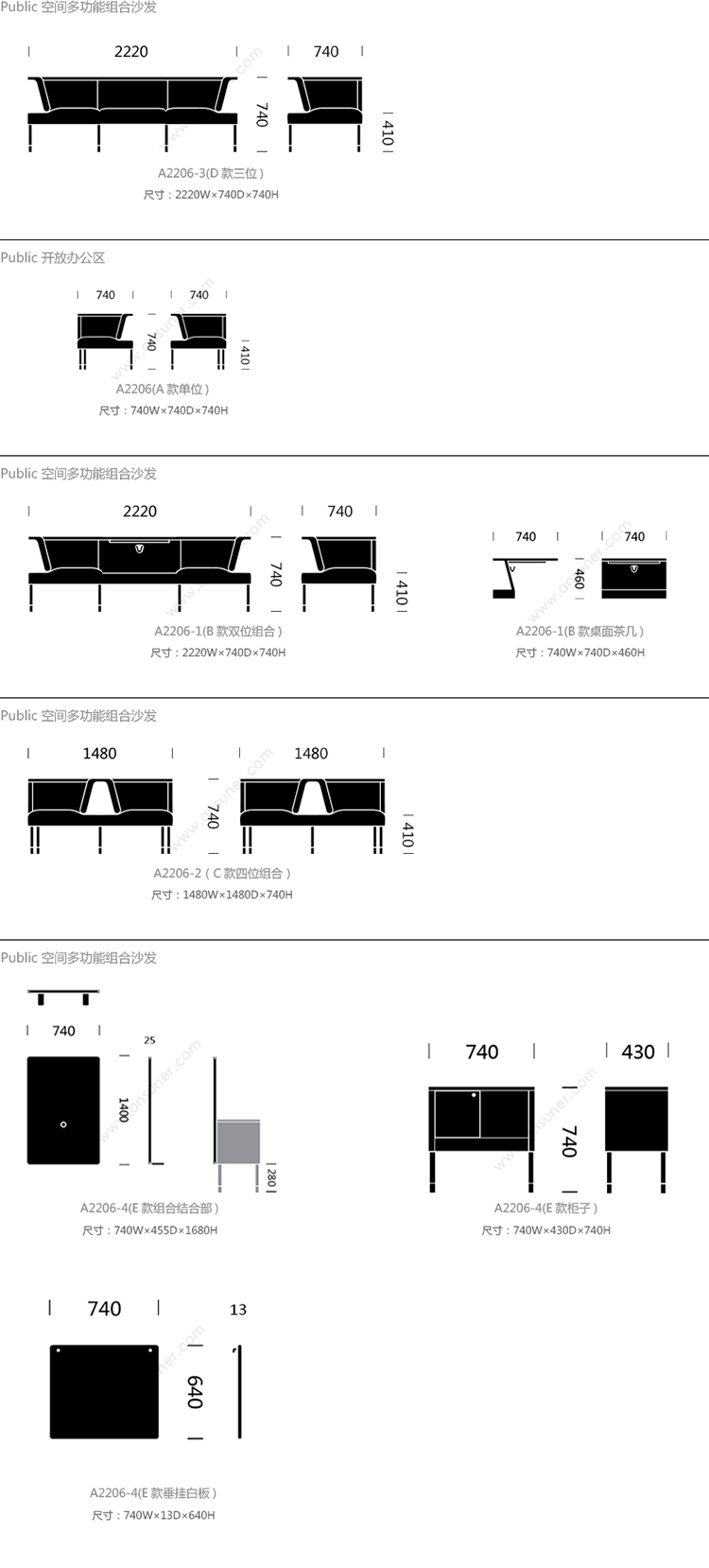 Public 系列尺寸/示意图