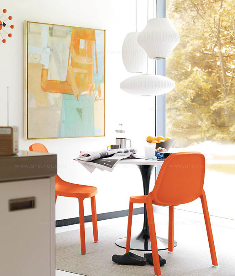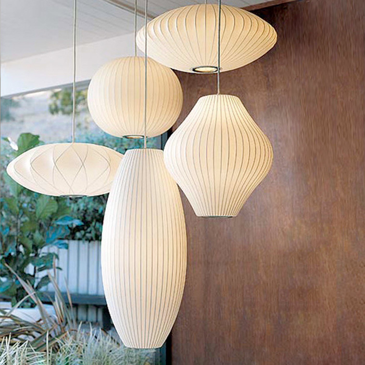 Nelson Cigar Bubble Pendant雪茄形气泡吊灯可以通过吊线板和6英寸长的吊绳悬挂在天花板上,散发出柔和均匀的光线。有小号、中号、大号和加大号几种不同规格。这些灯具最初生产于1952年,当时Nelson看到一组配有精心制作的丝质灯罩的瑞典吊灯,由此触发灵感。然而,吊灯的价格实在让人望而却步。Nelson决定设计制作自己的灯组,并且想出了用透明塑材代替真丝的创新工艺,使其能拥有更实惠的价格。