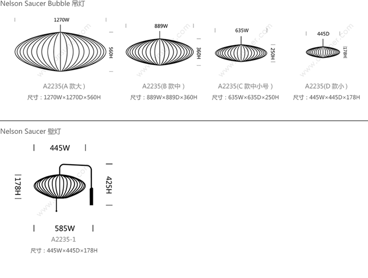 Nelson Saucer Bubble 系列尺寸/示意图