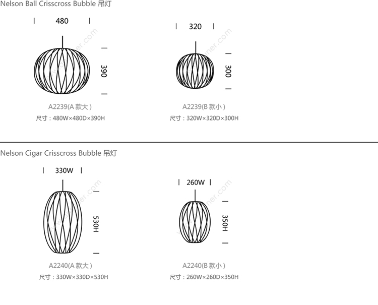 Nelson Ball Crisscross Bubble 系列尺寸/示意图