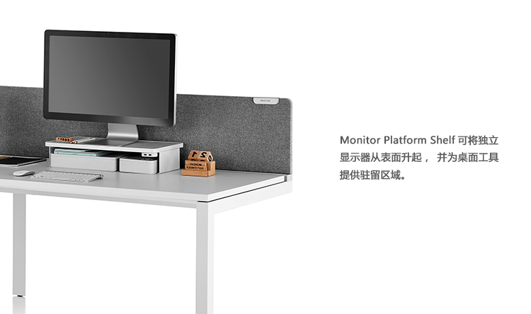 Monitor Platform Shelf可将独立显示器从表面升起,并为桌面工具提供驻留区域。