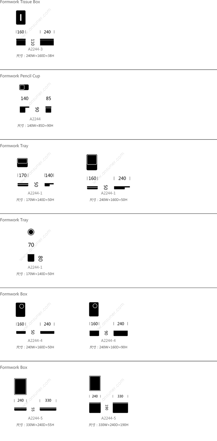 Formwork Tissue Box 系列尺寸/示意图