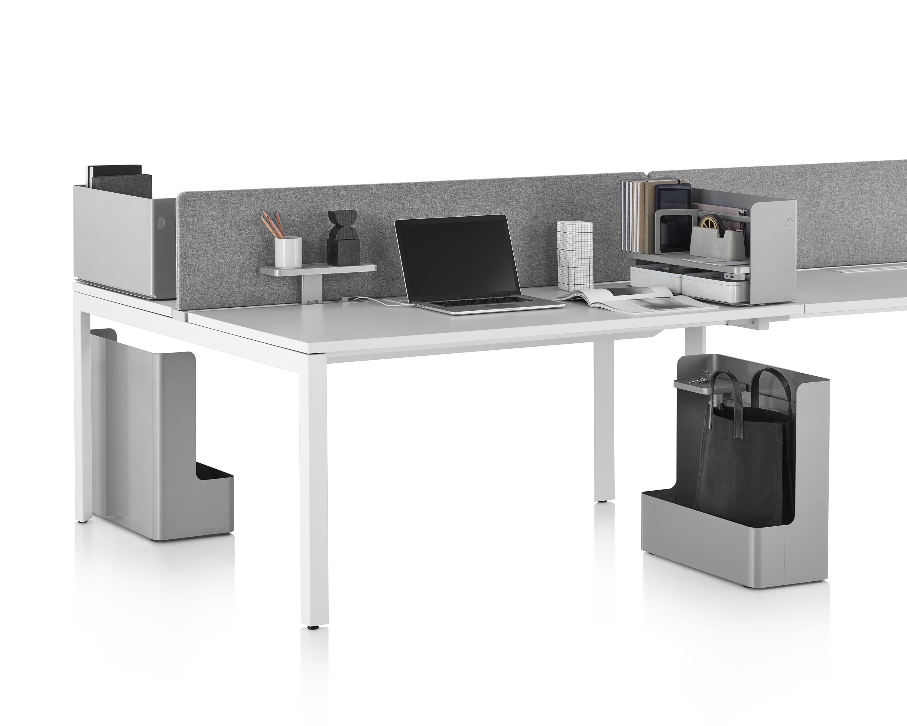 考虑到占据家庭及办公室空间的笨重物品的存放问题,Sam Hecht和Kim Colin设计了具有可拆卸盖子的储物盒。每个盖子上设计有孔洞,可供放置移动式笔筒。或者,笔筒可固定于储物盒内部孔洞下方压槽中,从而在无需打开盖子的情况下便可接触杯中物品。