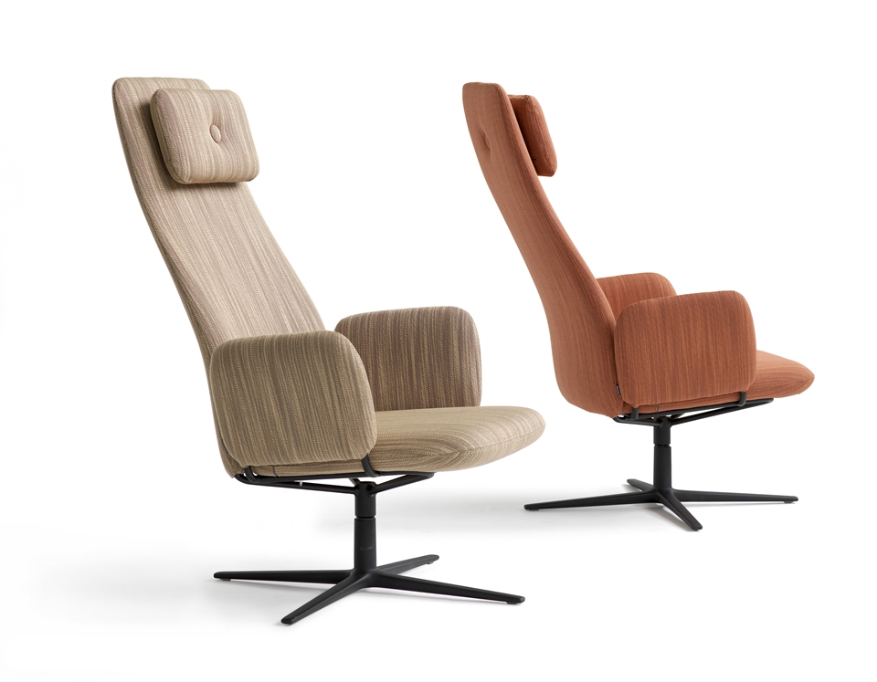 在织物或皮革模压CMHR泡沫填充。软垫。皮革作为每立方厘米6a所示。随着臂。在钢涂漆旋转基座。塑料脚。Dundra是一个大家庭,包括脚凳,椅子,高脚凳,安乐椅,沙发和桌子。
