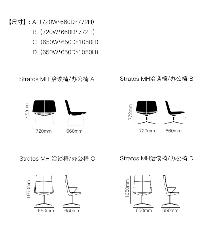 Stratos MH 洽谈椅/办公椅 系列尺寸/示意图