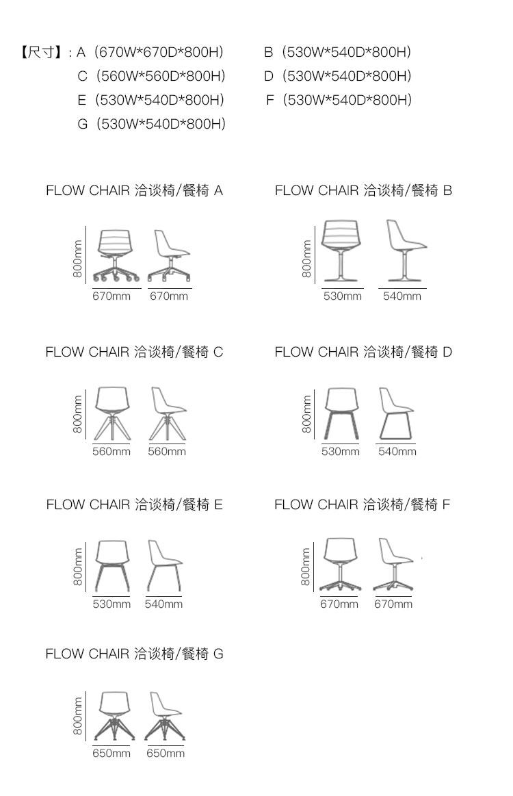 FLOW CHAIR 洽谈椅/餐椅 系列尺寸/示意图