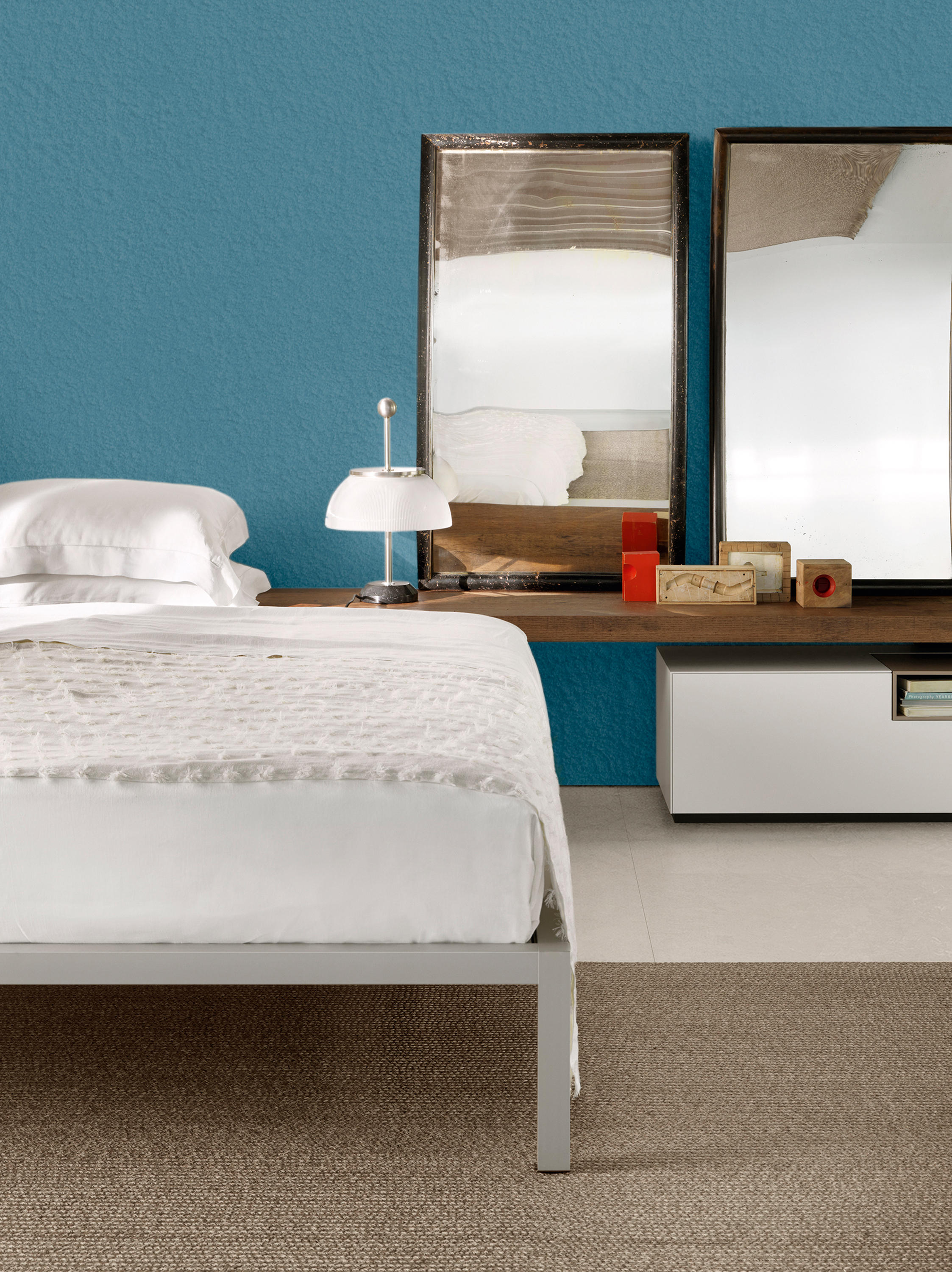 床在各种版本: •sommier •与床头板:57厘米高,“普通轮廓”无面板 •sommier与罩盖(在高度210厘米篷)。 帧 在自然阳极化的铝表面处理帧在抛光铝可用作 。对于57厘米高的床头板的版本和用于sommier篷版本的选项 铝框架,光泽涂成白色,黑色,红色。 尺寸 宽度范围从1米到210厘米,有一个固定的长度:210公分。床头的Unmodi能够高度:30或57厘米 特殊尺寸为板条和帧是可用的,在10厘米的倍数,除了篷版本,具有较长的前置时间。 最大可能长度220厘米(板条可用长度210厘米)。 床层高度:30厘米,unmodi能。 板条立足 单板条碱可以在双床结构使用特殊的铝-涂漆钢支承杆相结合。