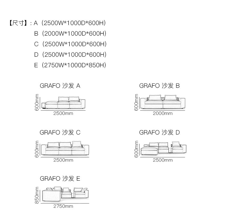 GRAFO 沙发 系列尺寸/示意图