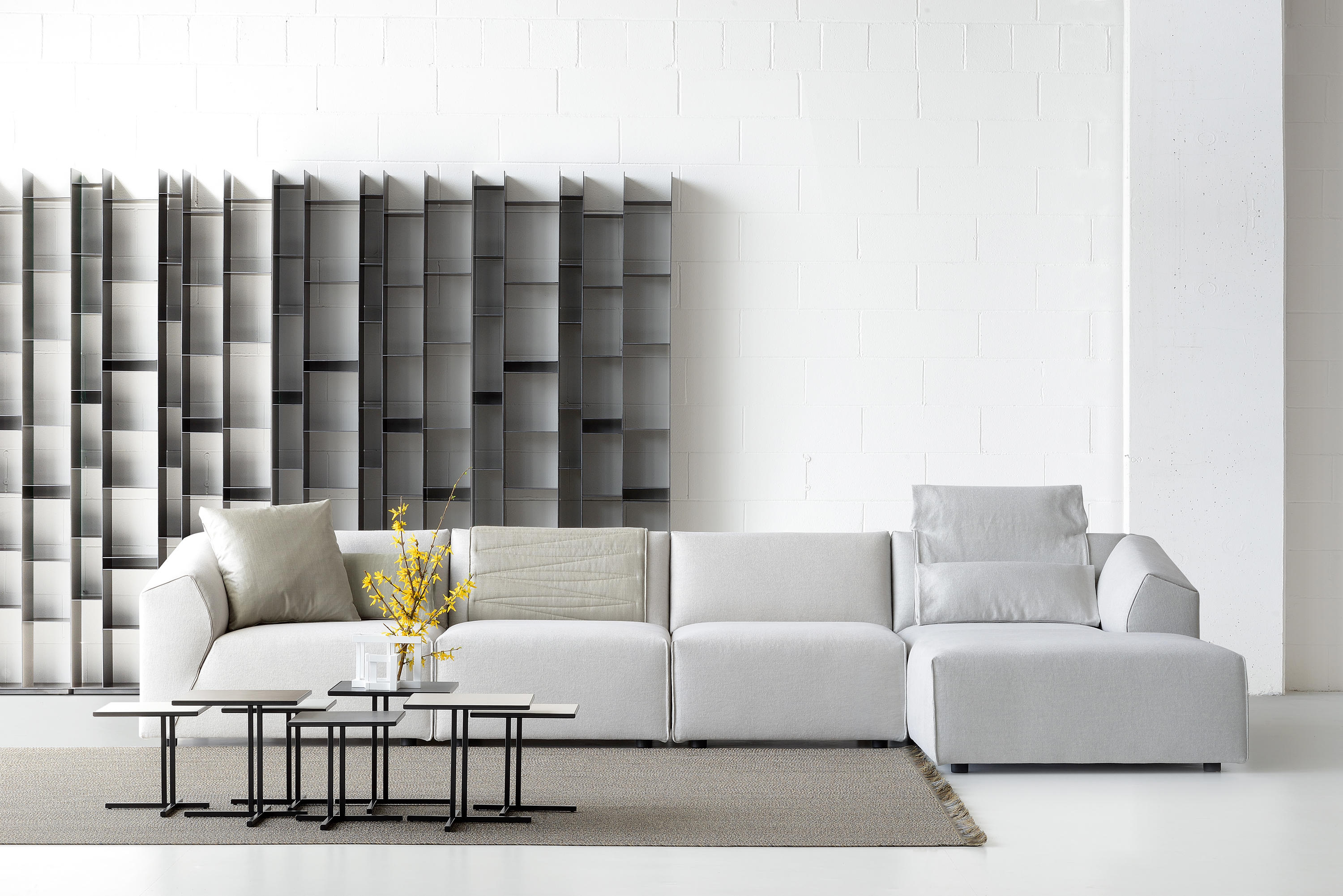 Thea是新的软垫系统,源自女性对形状的解释以及明显对立的指导原则之间的平衡:舒适,舒适-整洁,动态-严格,轻巧-高度紧凑。Thea的折衷主义在于对不同观点的和谐研究:正面正交,侧面倾斜和背面凹入。沙发具有高度的原创性和动感,只是因为它融合了所有这些语言:它是一种投射和形状的游戏,赋予其设计独特且可识别的标志。涂层增强了女人味:就像包裹包裹和垂褶的连衣裙一样,褶皱完美地粘在模块的形状上。通过使用不同的接缝,对剪裁细节以及意大利剪裁的要求给予特别关注。在三种不同的颜色(白色,鸽子灰色和无烟煤灰色)中应用偏斜接缝和对比度磨边,以定义角度,曲线和形状。五个功能性配件完善了产品系列:头枕,靠垫,方形垫子,被子和铝制托盘。