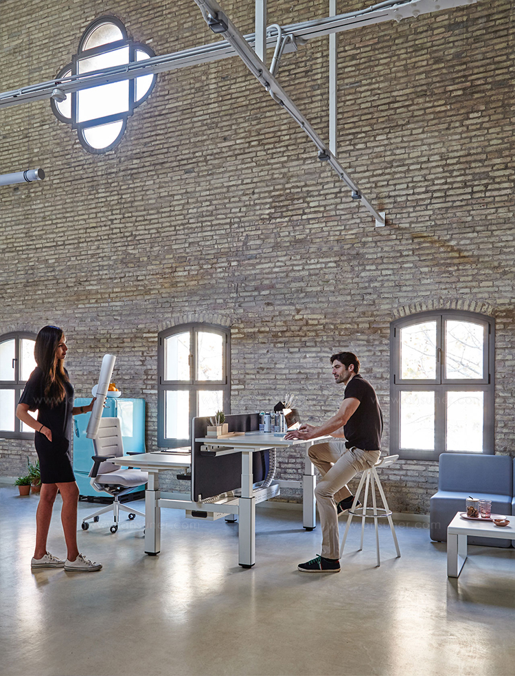 机动性办公桌,一个可以可调并固定办公桌高度的概念,在你工作的时候同步管理你的健康。在每天工作几个小时里,不仅能带来积极的健康益处,还能让员工集中精力提高工作效率。