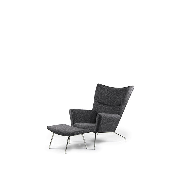 Wing Chair 典型的 Hans J. Wegner 設計,雕塑般的立體線條,讓這張椅子像藝術品般的獨佔一方。寧靜、祥和、平衡的鮮明的個性,來自椅背的弧度、轉角的收邊、肩線的溝槽和襯墊扶手。