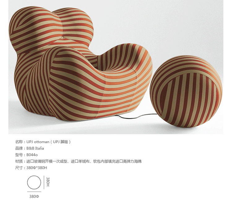1969 年,意大利家居品牌 B&B Italia 发布了由世界著名设计师 Gaetano Pesce 设计的一系列包括7个单品聚氨酯泡沫椅子,其中就有日后在国际上大受好评的 UP5 。UP5 是一张扶手椅,它独特的结构和仿生设计灵感来源于女性的曲线,工艺上面的创新,和对当时社会对女性的性别歧视所作出的微妙诙谐的抨击,使它称为一件别具一格的作品,并被认为是意大利设计的经典作品之一。2014年, UP 系列椅子迎来了一个新的款式: UPJ ,「 J 」代表「 Junior 」,意即少年。可想而知, UPJ 是专门针对儿童的一款扶手椅, 不过,如果你以为有什么大的变革那就大错特错咯。其实,UPJ 和早期的 UP5 在造型上并没有什么变化,只不过缩小了尺寸。但是,当你看到可爱的小朋友和小伙伴们在一起愉快的玩耍和一些温馨的亲子互动后,也许你又会想,这又有何不可呢?