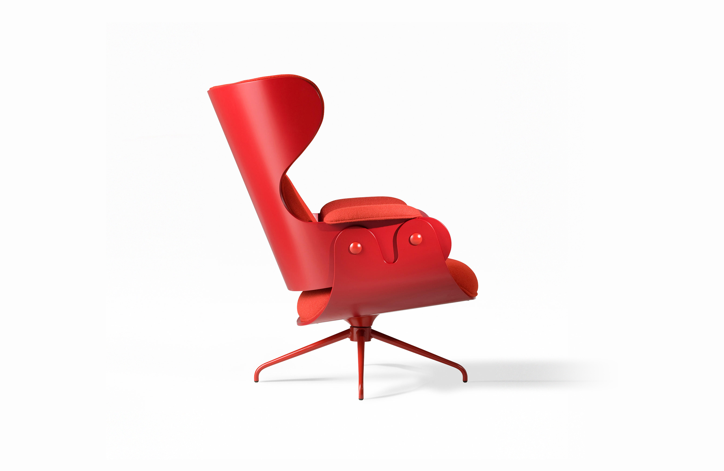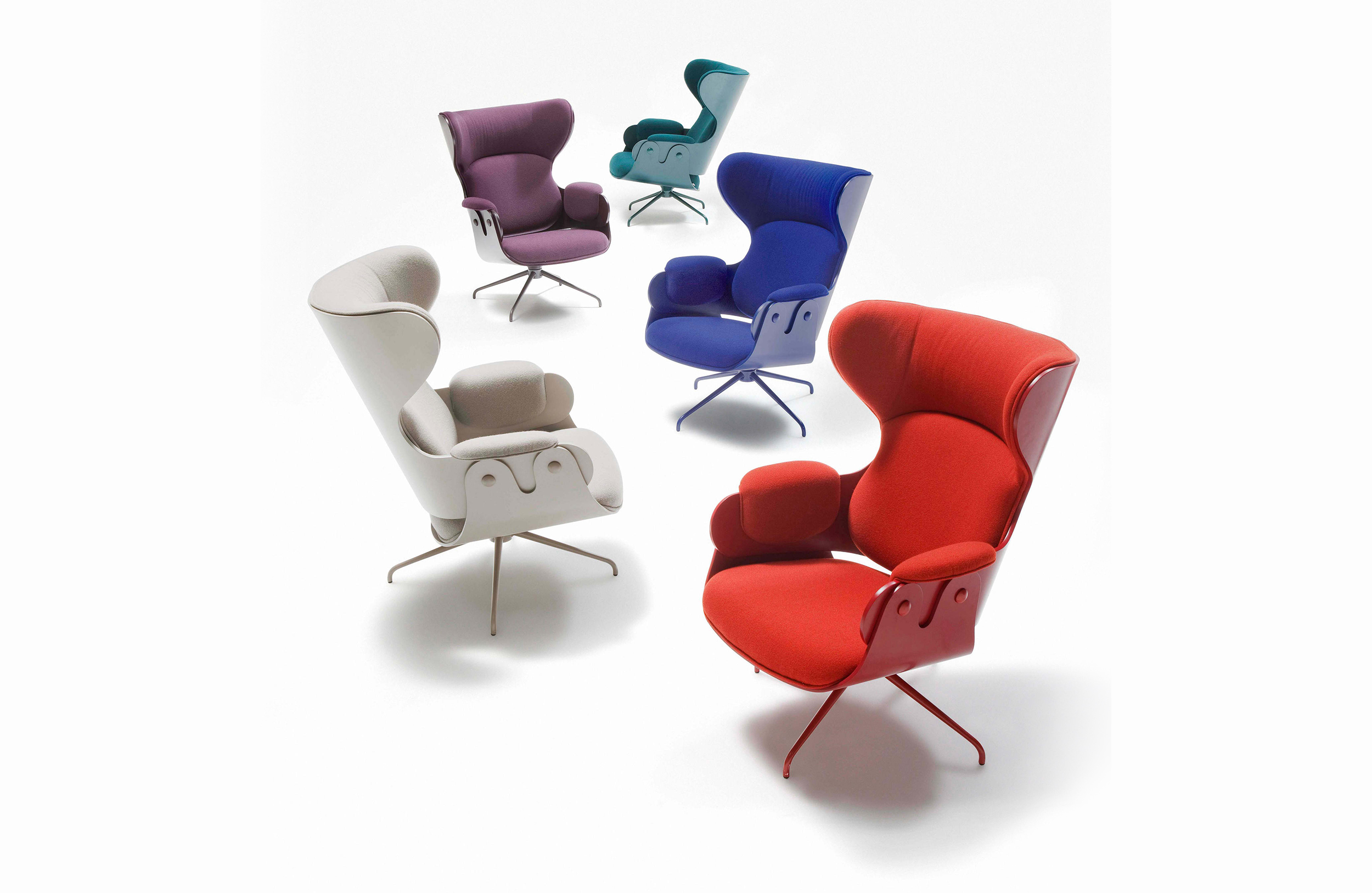 西班牙设计顽童 Jaime Hayon 2010 年在米兰家具展上再次吸引所有人的目光,Jaine Hayon 与西班牙家具厂牌 BD Barcelona Design 合作的 Showtime 系列家具自推出后俨然成为Jaime Hayon 个人的经典代表作,在 2010 年加入了新成员 Showtime Lounger 休闲椅,当中似乎不难发现有着 Charles & Ray Eames Lounge Chair and Ottoman 的影子,重新诠释这张20世纪经典椅款 Hayon 对设计大师致敬的同时,也注入更多 Hayon 幽默诙谐的设计手法。 Showtime 系列家具主要使用的材质和构造包括:优质夹板压模贴木皮而成、进口头层牛皮或进口羊绒布、内部填充高密度海棉、优质铝合金脚架。