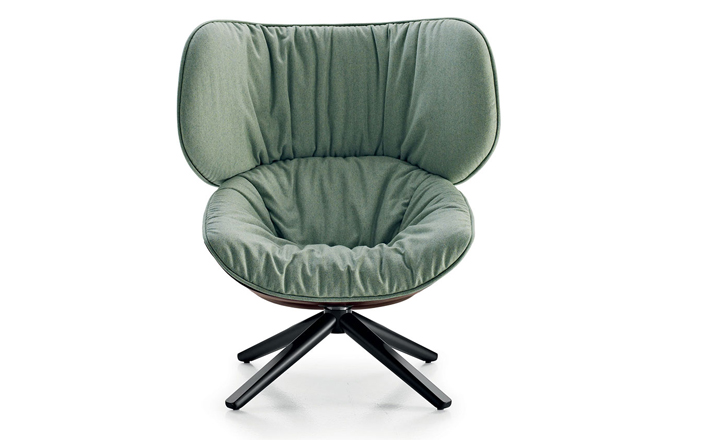 现在可以很明显的看到,追求柔软舒适,一向是Patricia Urquiola的作品中不变的主题。旋转扶手椅Tabano代表着一个重要的阶段,由Husk首次体现这个宣言,其共同特徵是椅背皆插入大型幅条。这也可以说是追求舒适,定义出它的曲线与大容量的椅座与椅背。 大耳朵般的设计来自于满足功能标準上的需求,更甚,这是一种超越美感经验的慰藉。它的外观唤起好奇心,极富表现力,一点都不保守。 对卡通视而不见的揶揄,它同时向大师传承下来的作品,与对先前建立起难以超越的躺椅表示敬意。饰面分别表现出紧緻的外表和轻鬆的内侧。内外侧皆被Tabano完整定义,加入了拉鍊和人造皮革绕起整座外围, 具张力的饰面投射出对比的乐趣。Tabano在黑色聚氨酯旋转底座或橡木(浅、灰色和黑色)有布料或全皮外观,或这两种材料的组合, 脚凳更有椭圆形和其类似座椅的衬里。